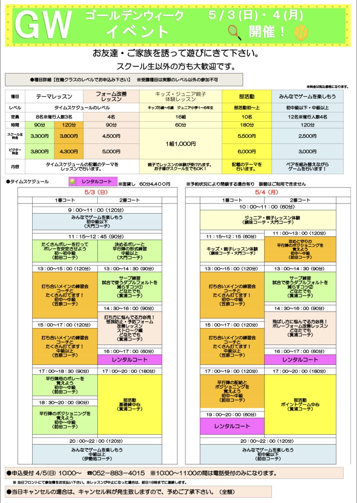 GWイベント受付は4月5日(日)10:00~になります。